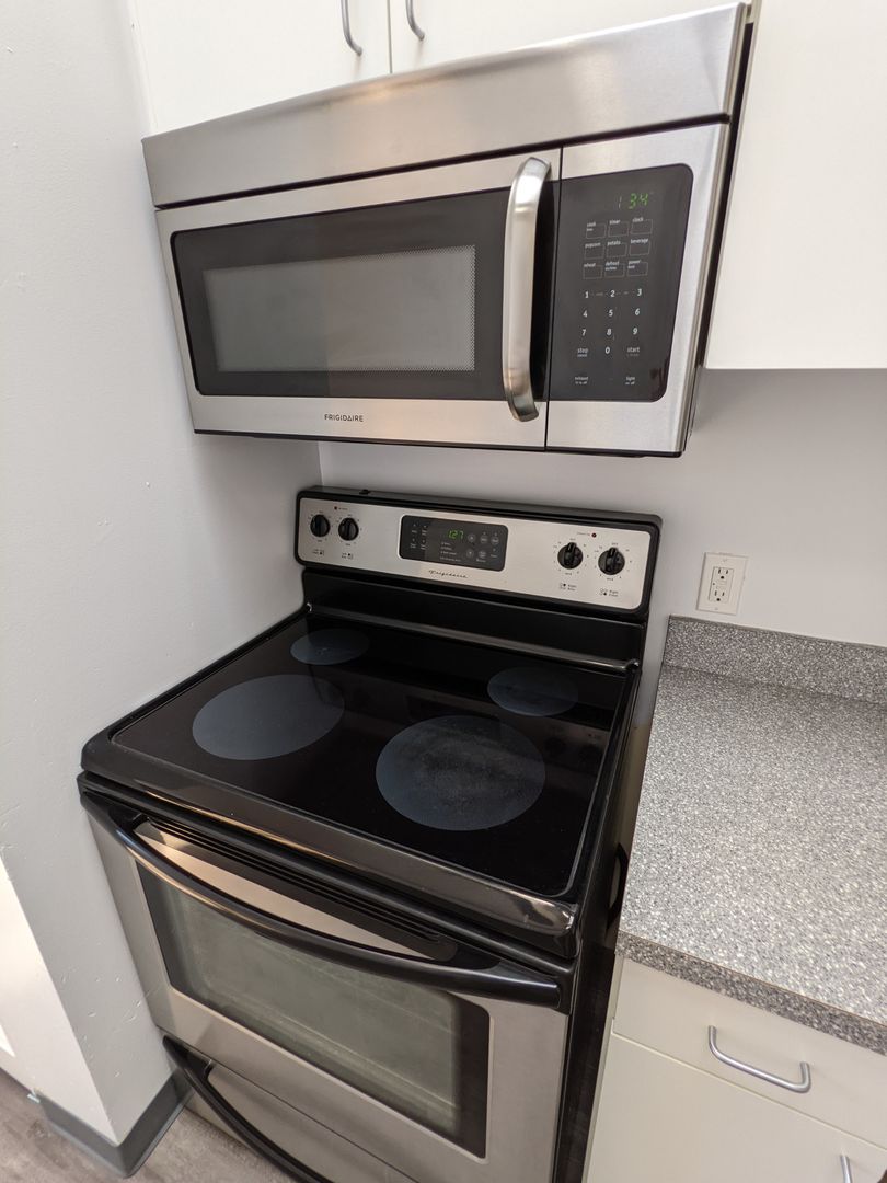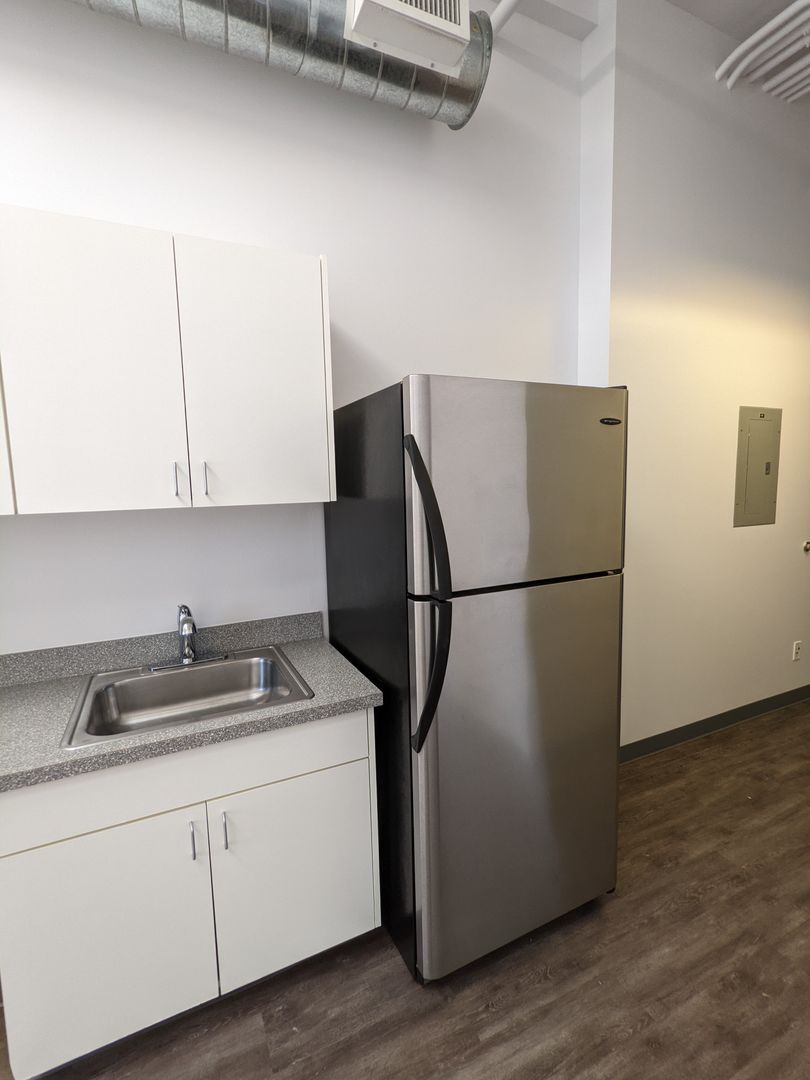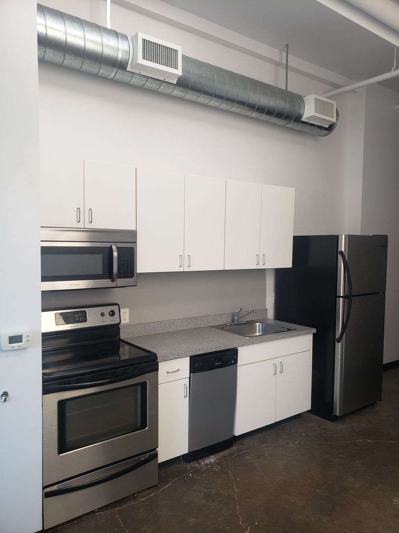 Welcome to the Salem Arts Building, a beautiful studio apartment located in the heart of Salem, OR. This top-floor unit boasts a large living area with 12-foot vaulted ceilings and a skylight, bathing the space in natural light. Equipped with modern stainless-steel appliances, including a refrigerator, dishwasher, microwave, and a glass top range. The kitchen also features a pantry and abundant cabinet space for all your storage needs.