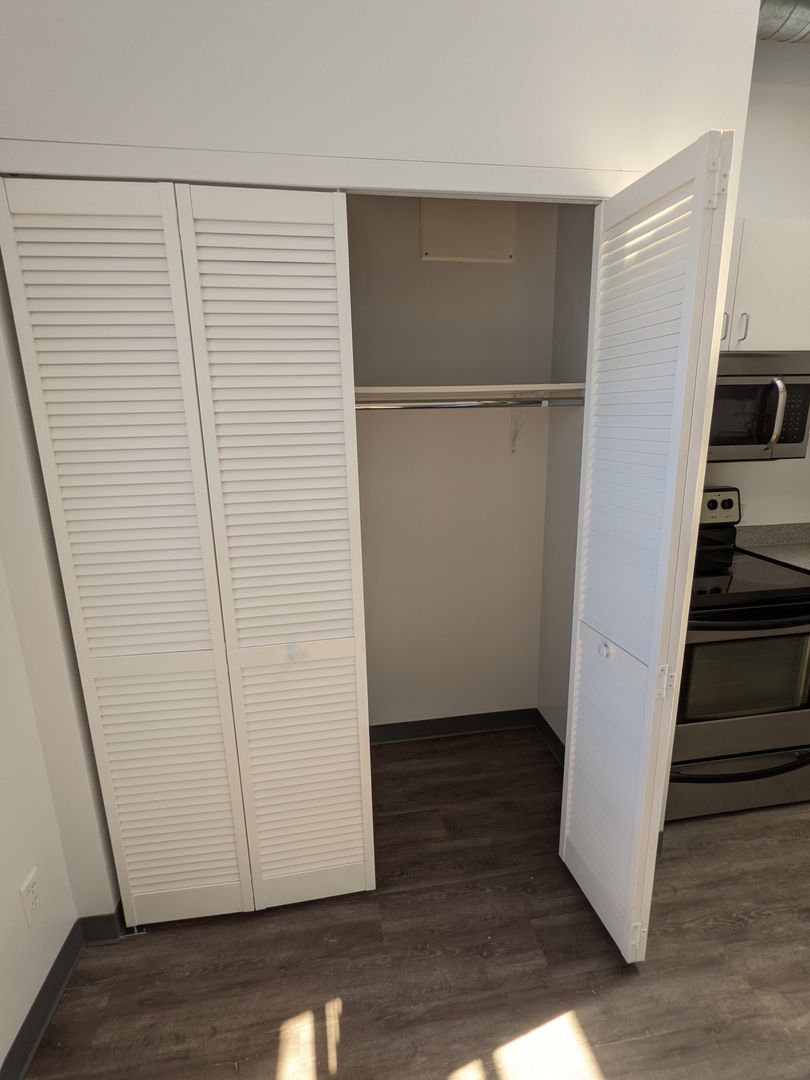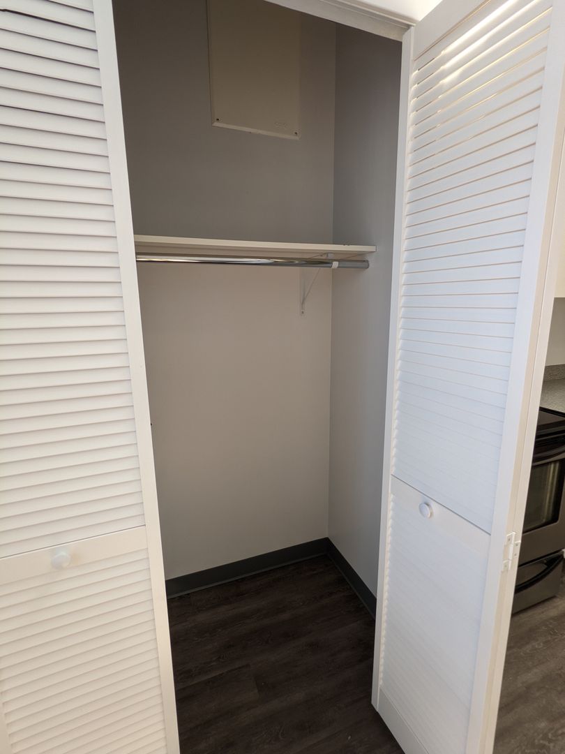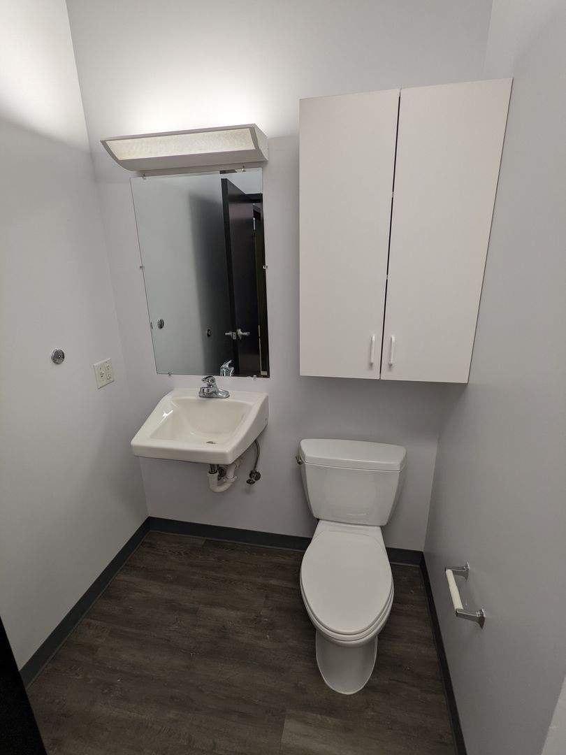 The bathroom comes with a stand-up shower, vanity lighting, and additional storage space. We are pet-friendly with a $300 pet deposit and a $25 pet rent. The building offers onsite laundry facilities and a keypad entry system for added convenience and security. Please note, there is no elevator in the building.