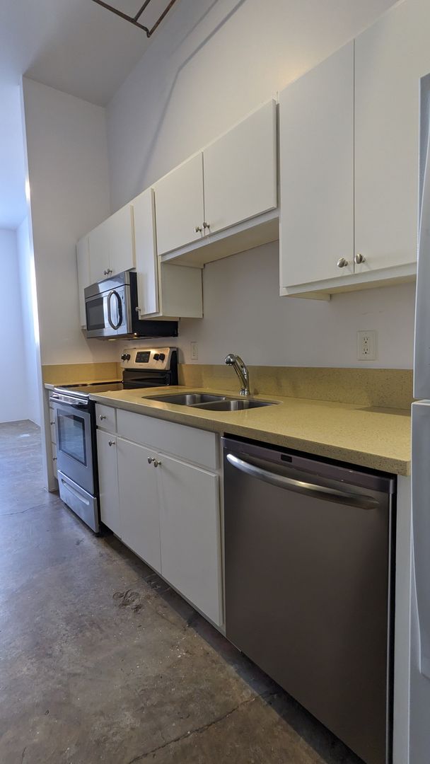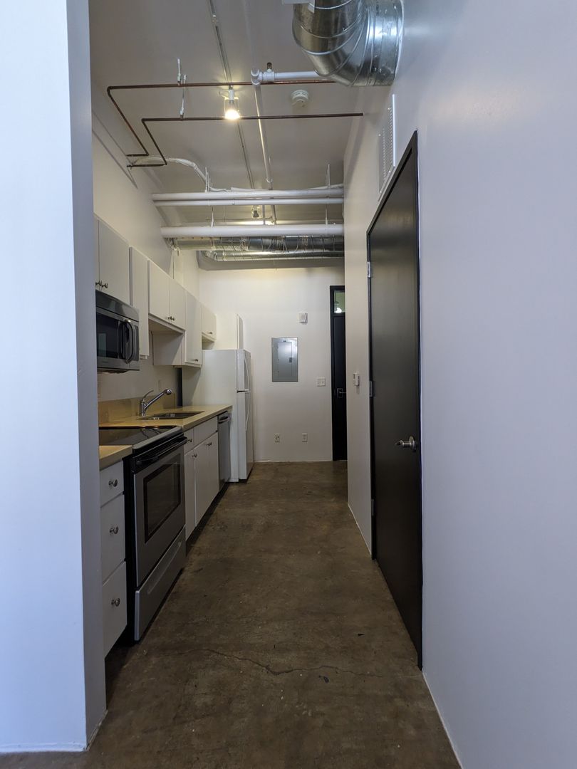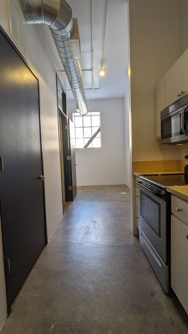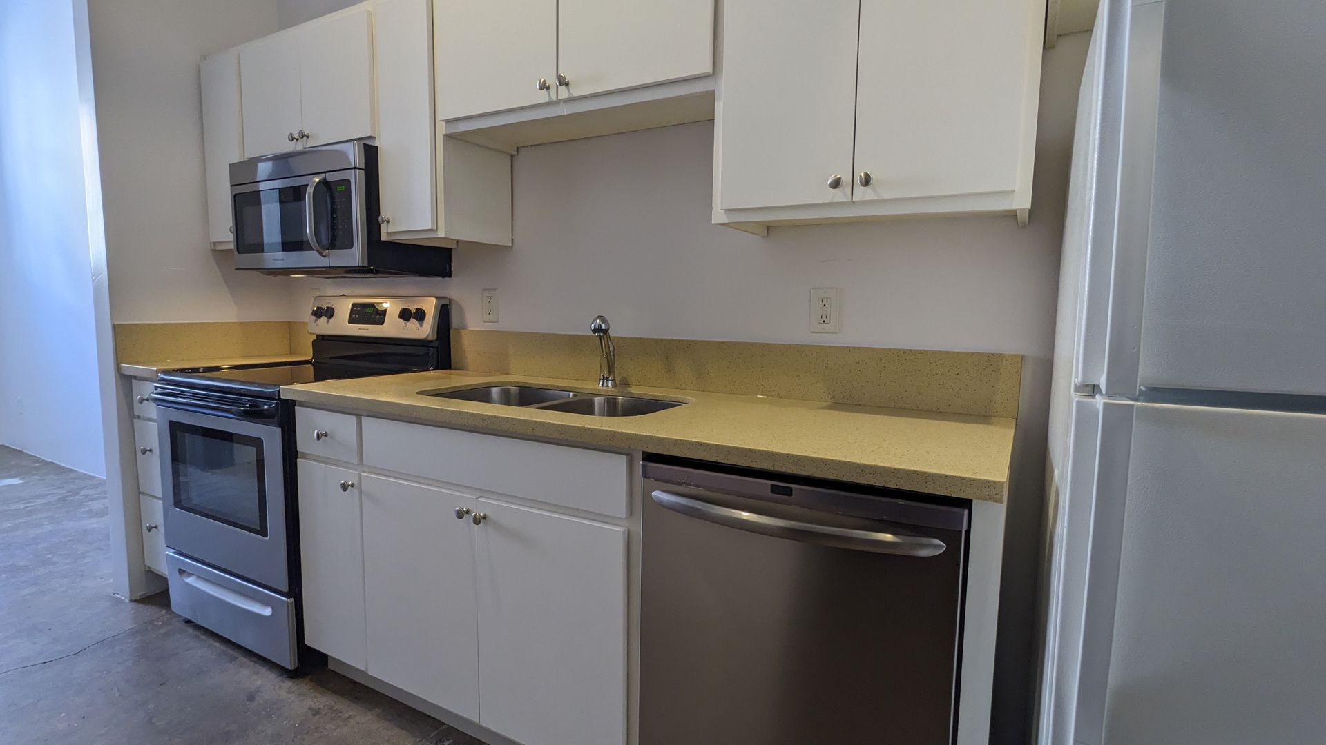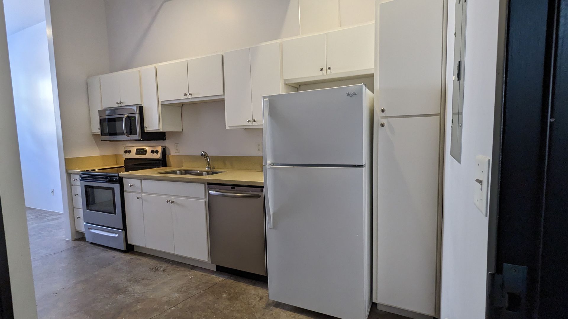 Introducing Salem Arts Building, a comfortable studio located in the heart of downtown Salem, OR. This spacious studio features a modern kitchen with stainless steel appliances, including a dishwasher and glass top range. The vaulted ceilings and large windows create a bright and airy living space.